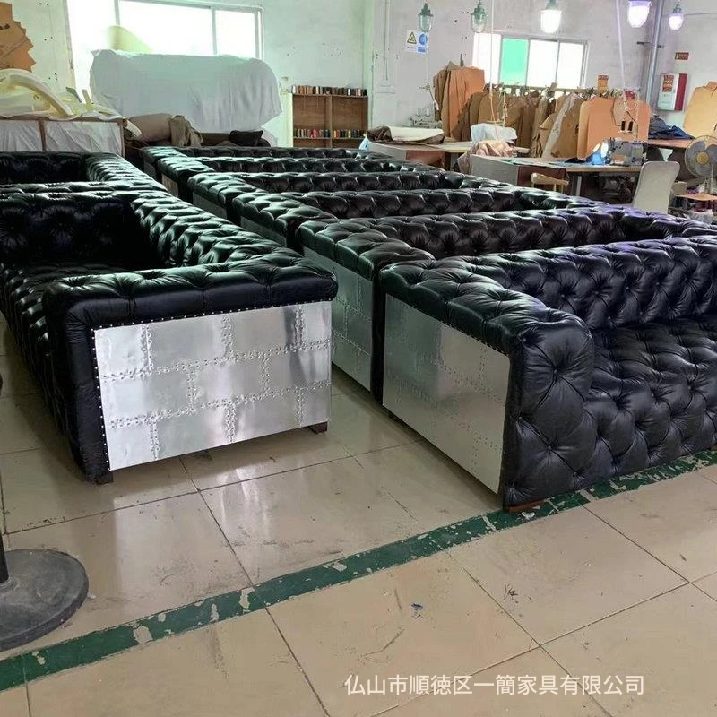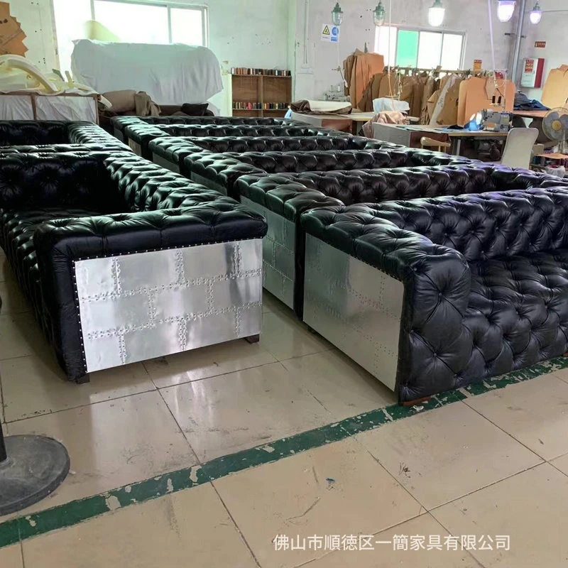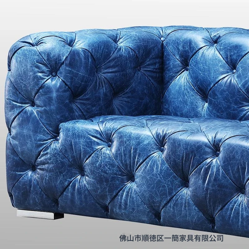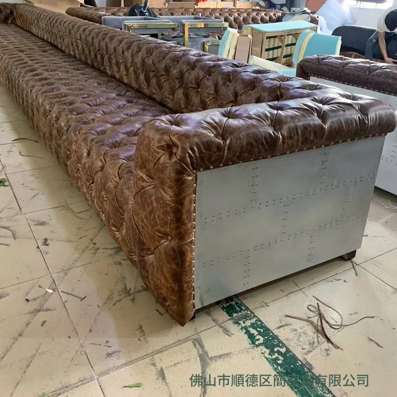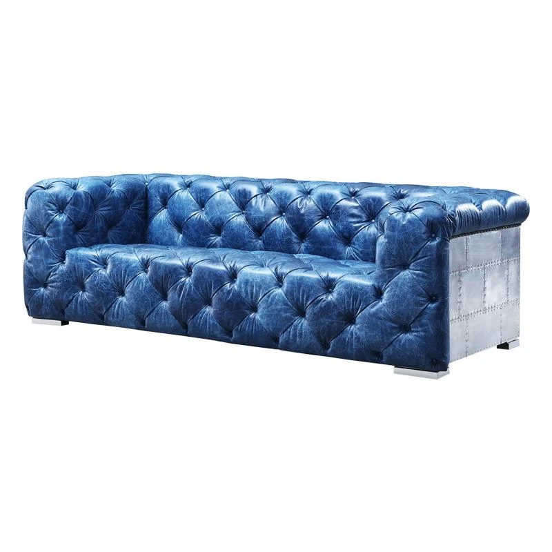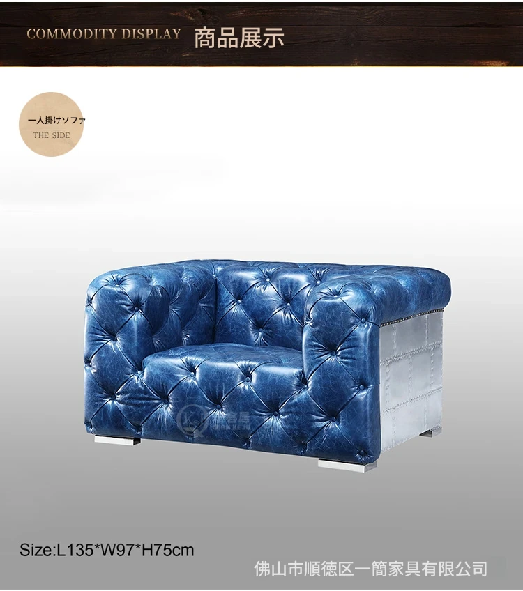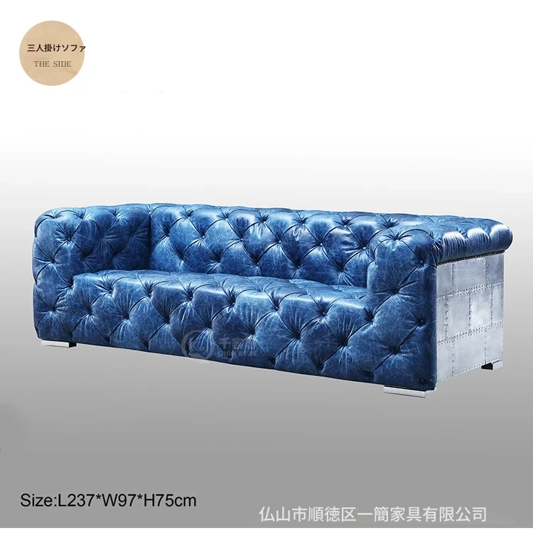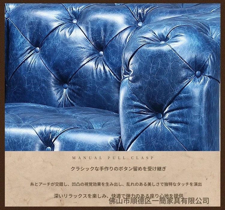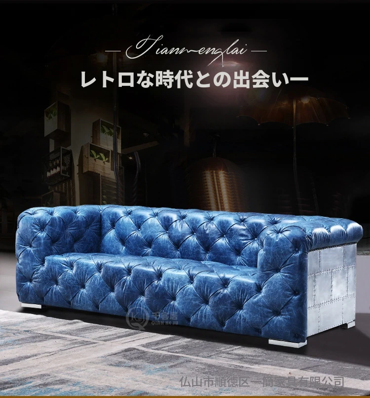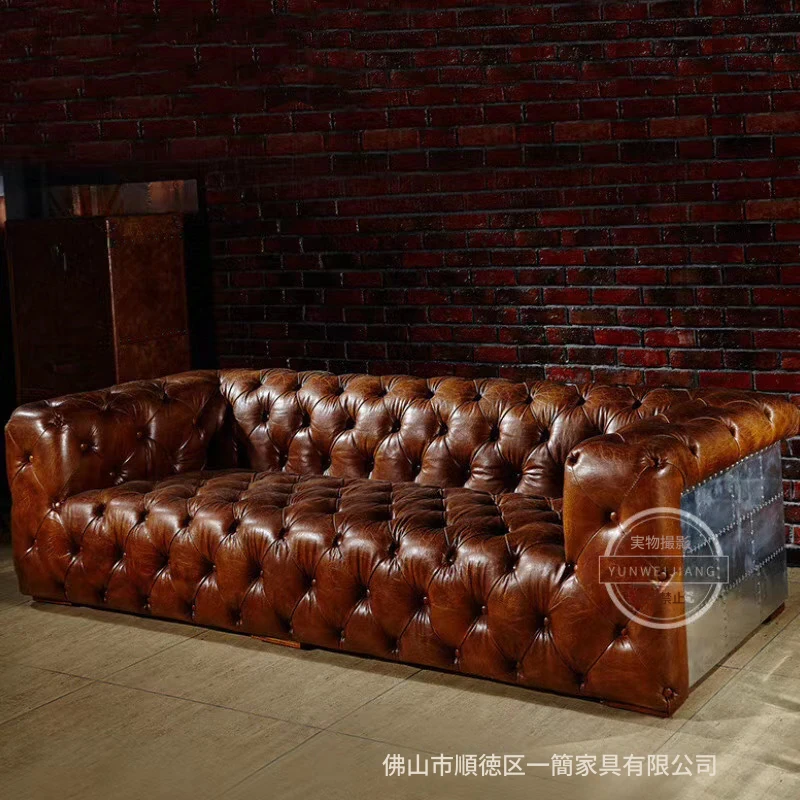 オイルワックスレザーの引き手付きソファ、アメリカンカントリー風のレトロデザイン、リビングにぴったりな3人掛け、スペースアルミニウム金属使用の高級本革ソファで、ヴィラのような贅沢さを演出!