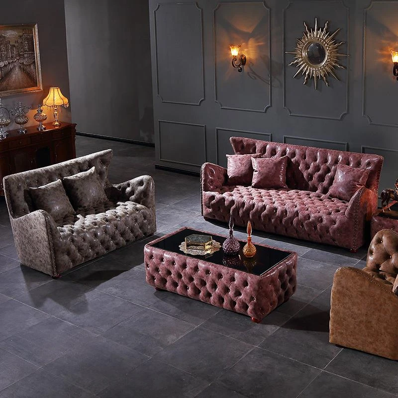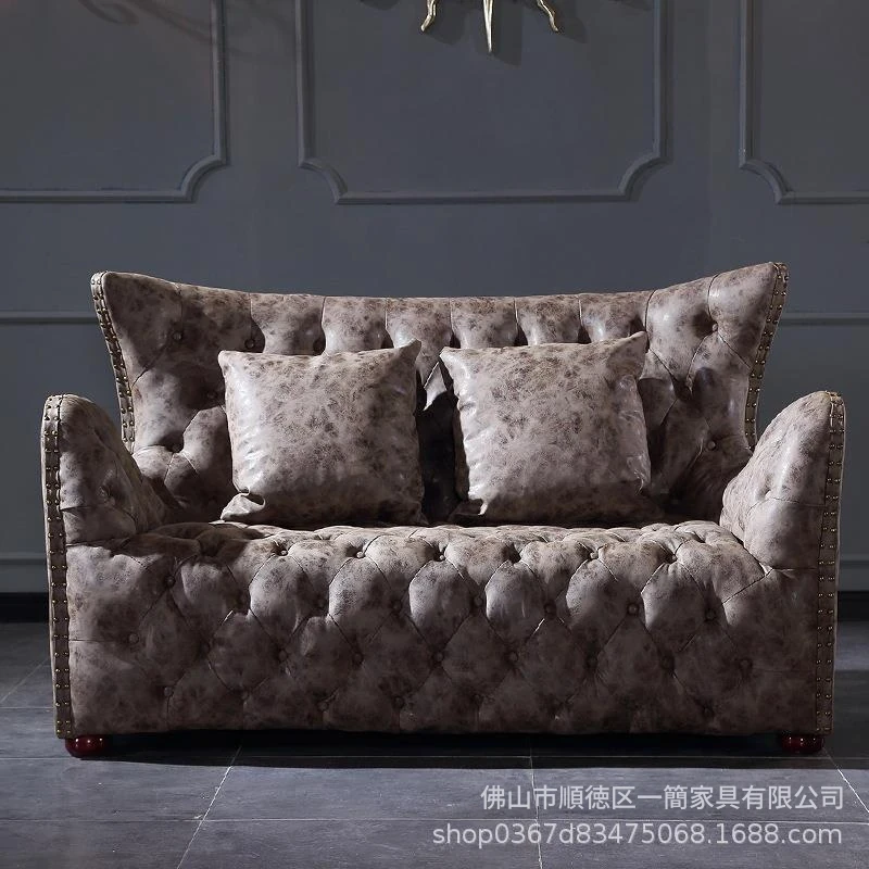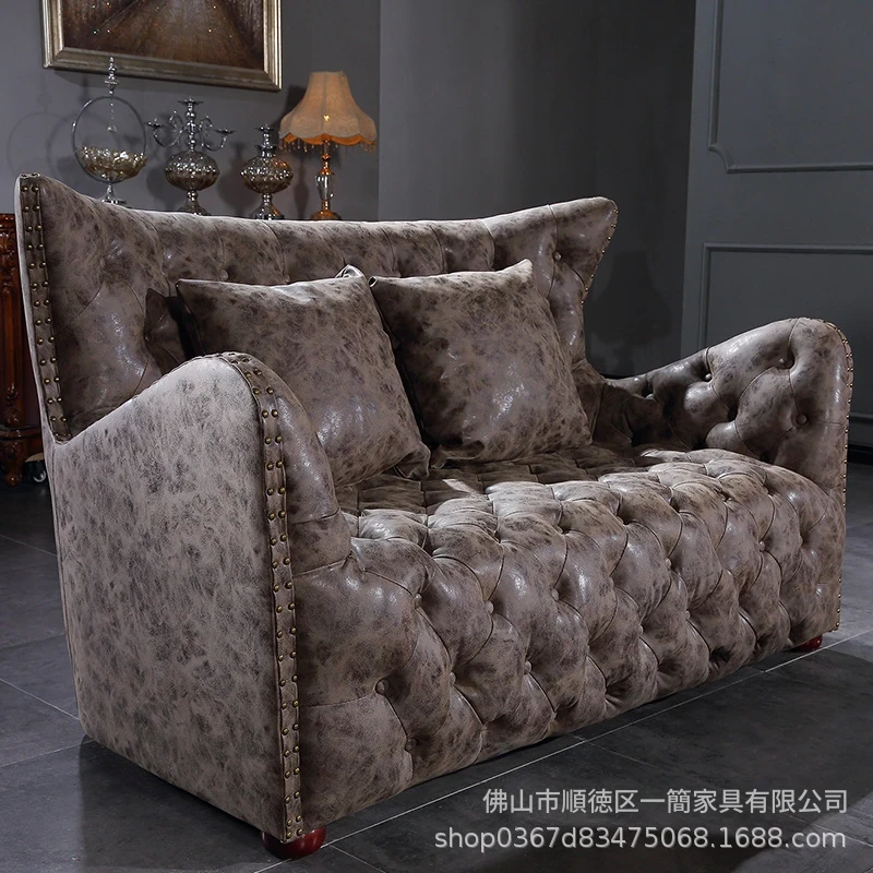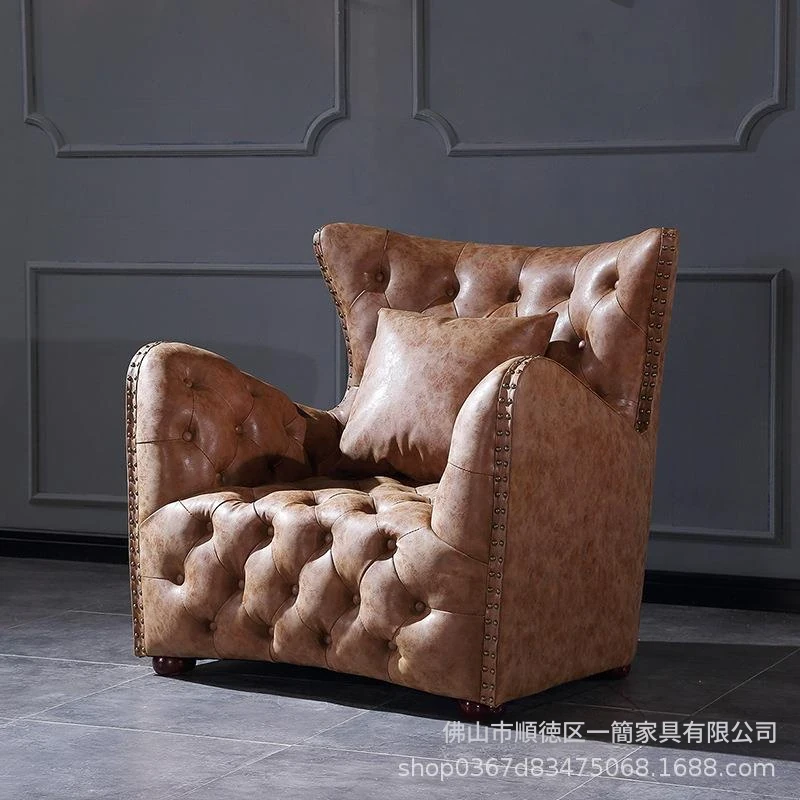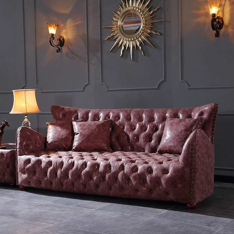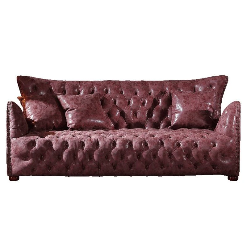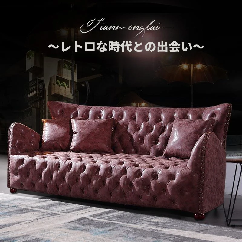 アメリカンビンテージ風アンティークソファー|シングル・ダブル・スリーピース|欧風レザー仕上げ|ボタン留めデザイン|リビングルームやホテルの書斎に最適|おしゃれで快適な空間を演出します!