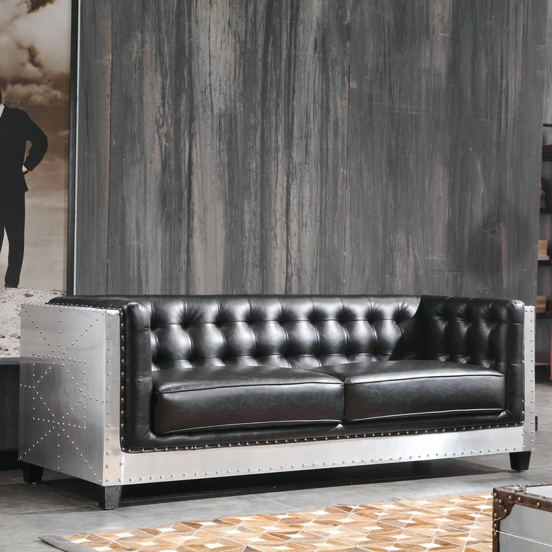 Vintage Industrial Aluminum Sofa - Creative Retro Design for Bars, KTVs, Unique Clothing Stores, and Office Furniture. Perfect Blend of Style and Functionality!