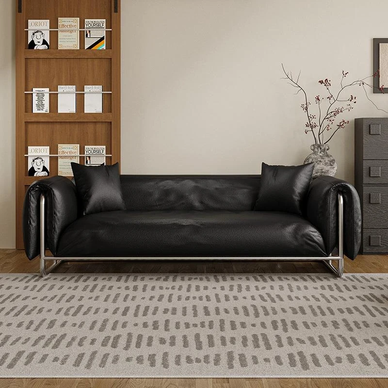 中古風スタイルのスホウブラック直排キャットグラブレザーソファ、小型リビングに最適!猫の爪が引っかからない布製の3人掛けソファで、居心地抜群。おしゃれな空間を演出します。