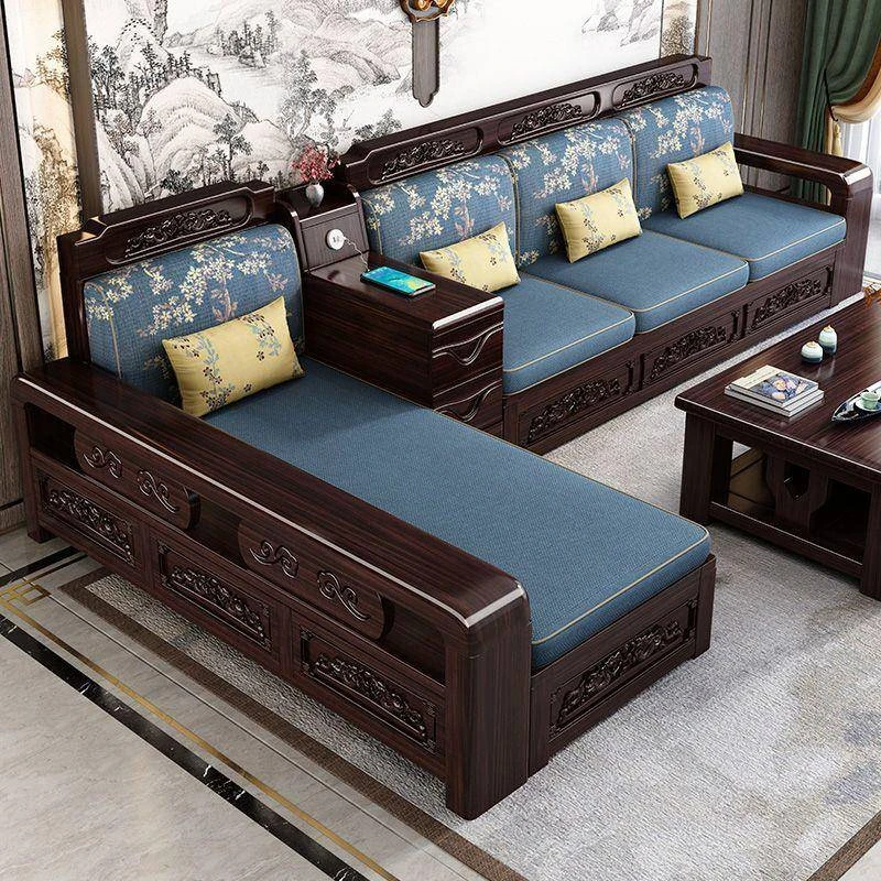 【Discounted Price】Solid Walnut Wood Sofa Set - Versatile for Winter and Summer, Chinese Style Living Room Storage Corner Chaise Lounge