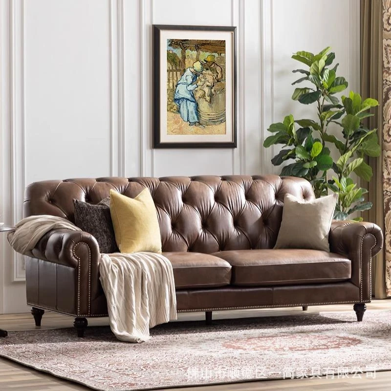 【Discount Price】European Style Vintage Leather Sofa - Perfect for Couples or Small Gatherings in Cafés & Bars - Stylish and Cozy Design for Compact Spaces