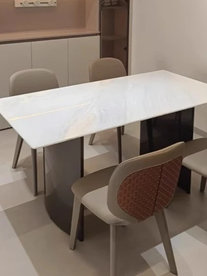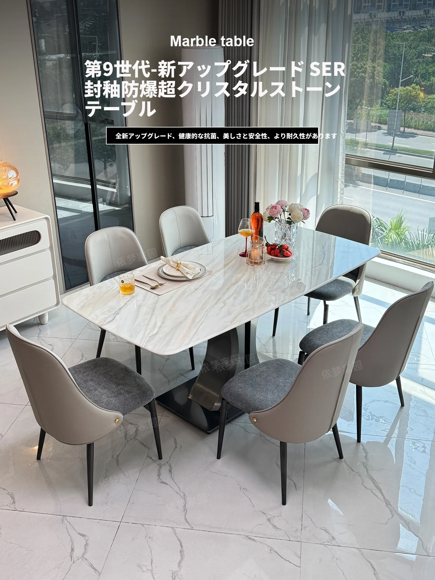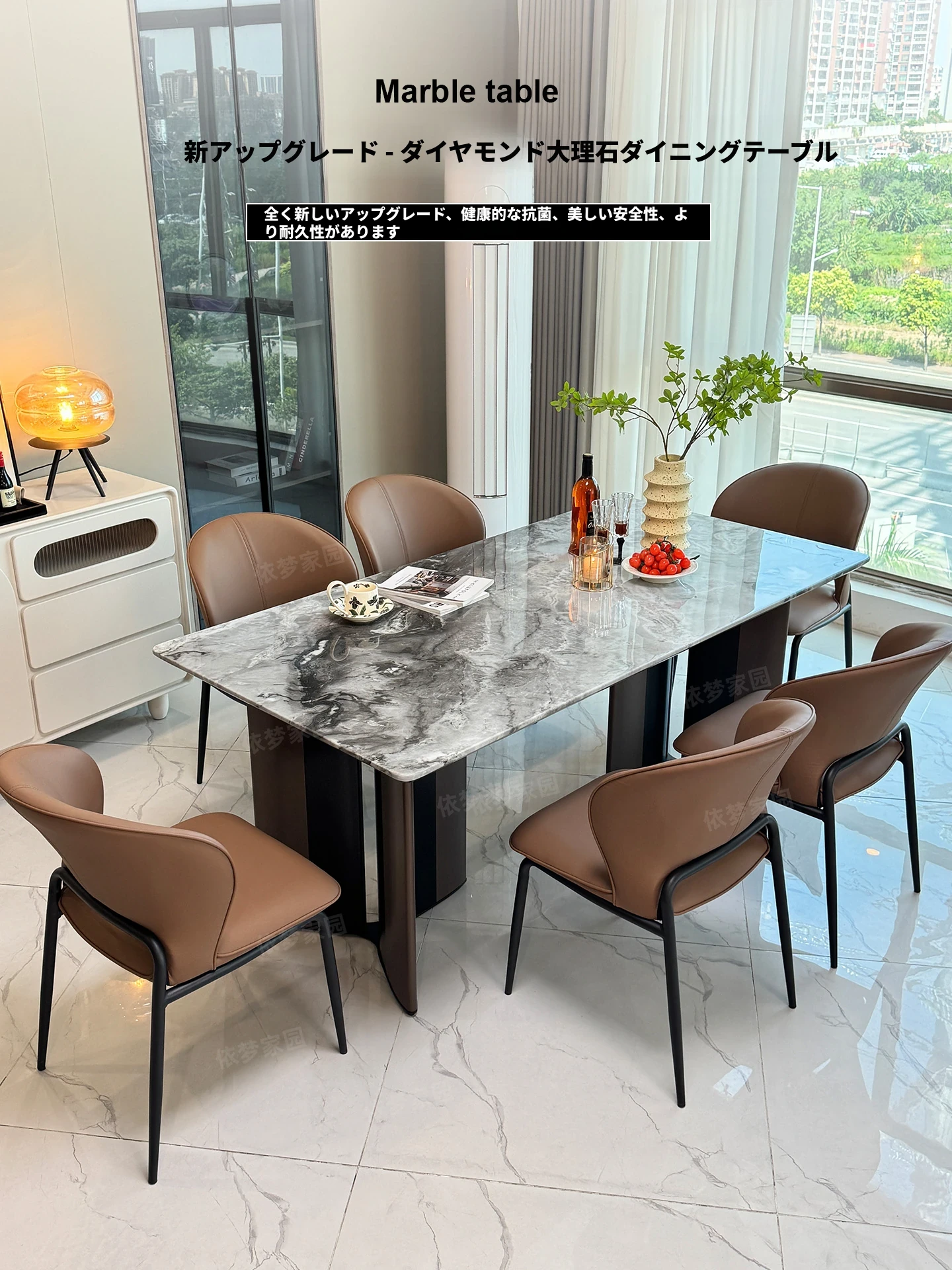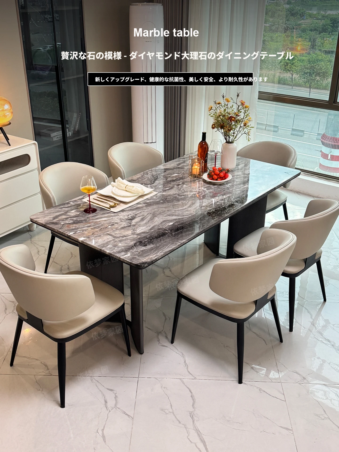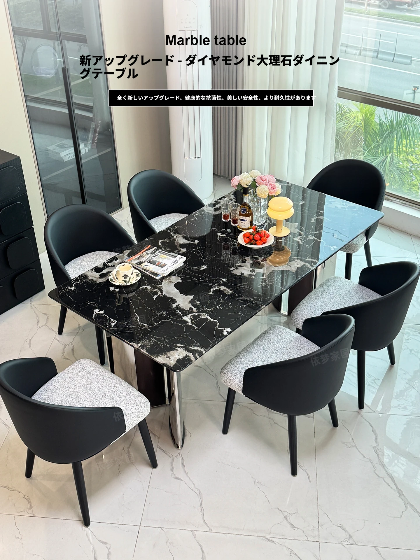 イタリアンミニマリスト大理石ダイニングテーブルセット|家庭用軽奢華でシンプルなモダン長方形デザイン|洗練されたスタイルでおしゃれな食卓を演出!