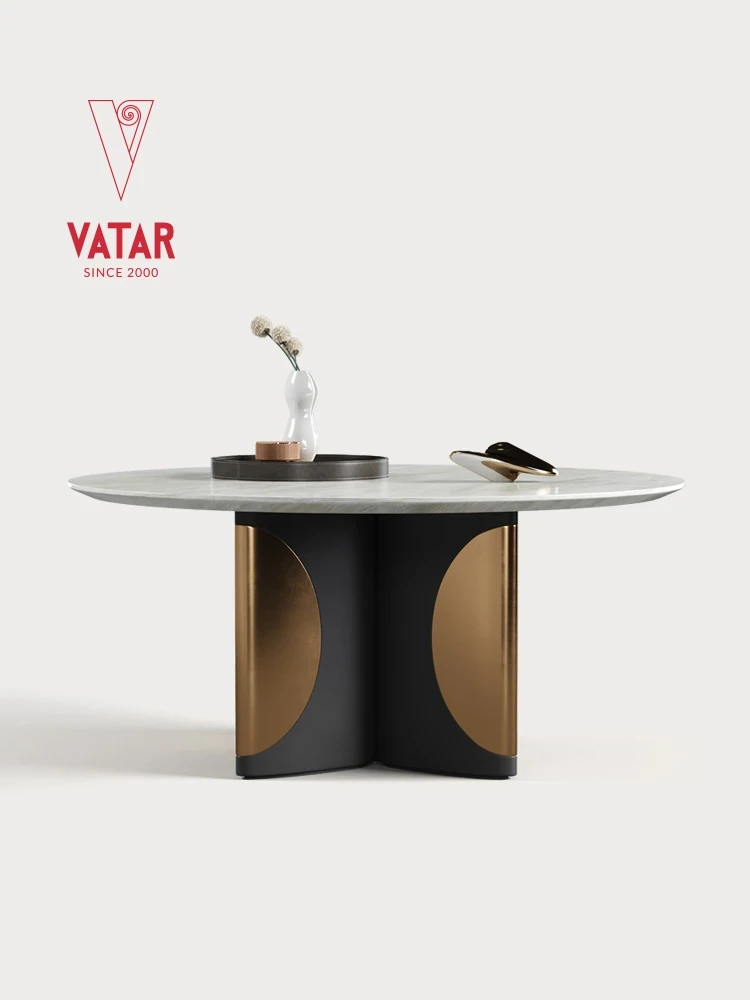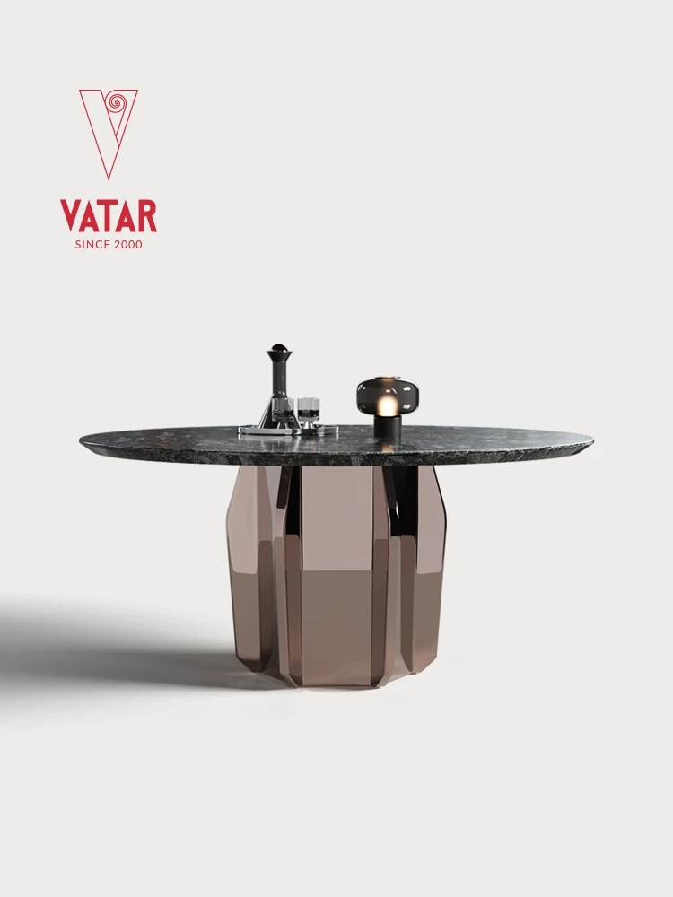 VATAR梵达ラウンドダイニングテーブル - アンティークブロンズ仕上げのステンレス製、イタリアンミニマリズムを体現した天然石の高級感あふれる食卓。家庭の食事を特別なひとときに!