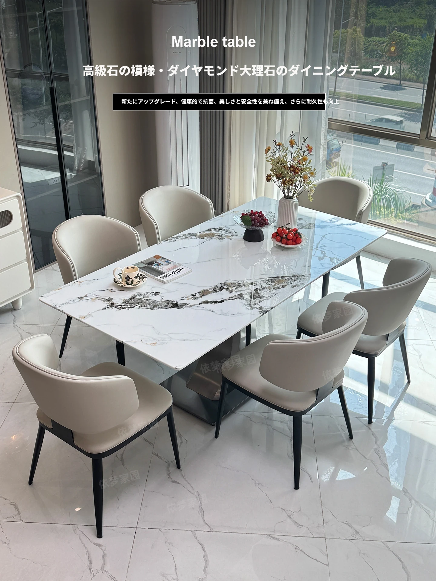 イタリアンラグジュアリー大理石ダイニングテーブル 2025年新作 高級石材使用!スタイリッシュな長方形デザインの家庭用レストランテーブル&チェアセット。おしゃれな空間を演出します!