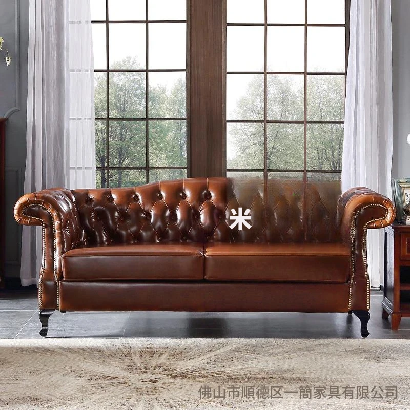 アメリカンライトラグジュアリー本革スナップソファー|ホテル・クラブロビーに最適なヴィンテージシガーバー向けの多人数用ソファー|メーカー直供で高品質を実現!