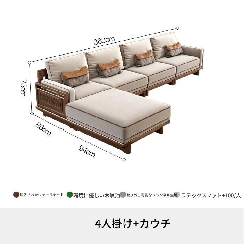 南米産ブラックウォールナットのリビングルーム用無垢材ソファ|北欧スタイル|冬夏兼用のモダン収納ソファ|心地よい空間を演出!