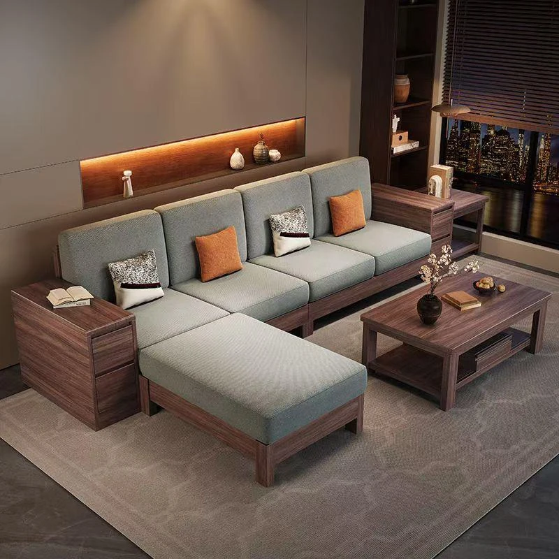 新中式スタイルの無垢材ソファセット|モダンでシンプルなリビングに最適|軽やかな高級感を演出|冬でも夏でも快適な小型住宅用|収納機能付きの魅力的な家具